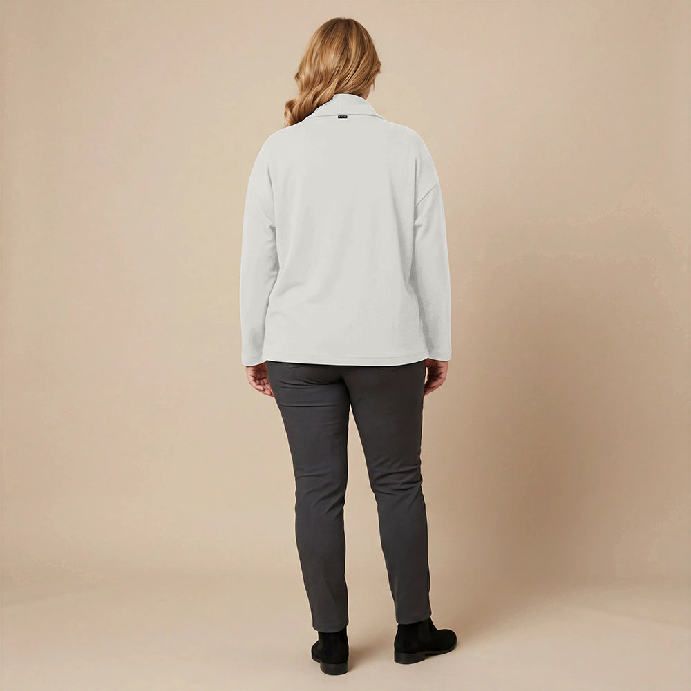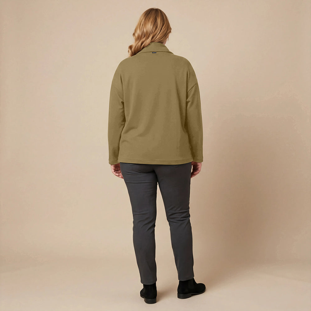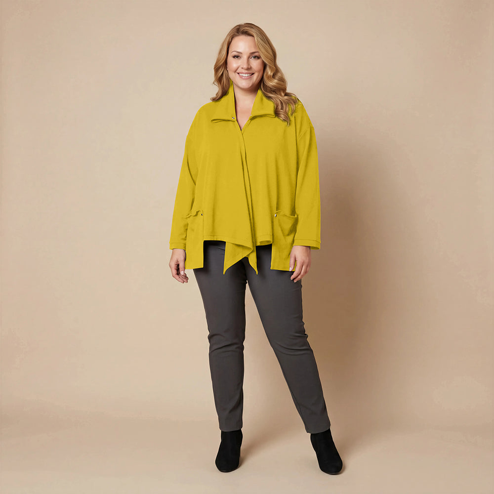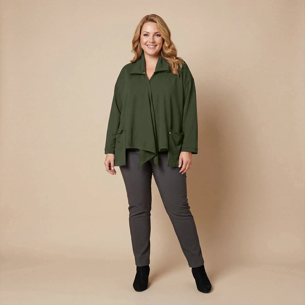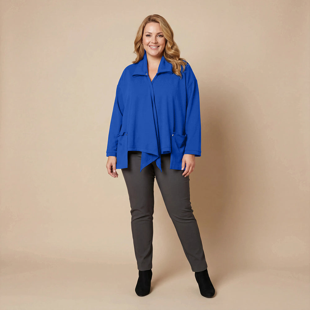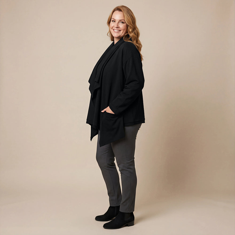 Dieser weite Cardigan von Boris Industries ist angenehm locker und fällt vorne schön. Der Doppelkragen lässt sich mit Druckknöpfen verstellen. Der Cardigan hat separate Taschen und wird ebenfalls mit Druckknöpfen geschlossen. Aus weichem Stoff gefertigt, eignet er sich perfekt zum Einkuscheln.