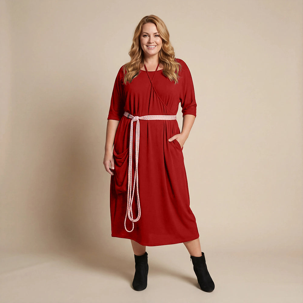 Dieses T-Shirt-Kleid von Boris Industries fällt dank der weichen, dehnbaren Baumwolle weich und luftig. Der weite Ausschnitt und die eng anliegenden Ärmel sorgen für Platz und Komfort. Es reicht bis unters Knie und wird mit einer passenden Tasche geliefert, die Sie auf verschiedene Arten tragen können. Einfach, bequem und doch einzigartig.