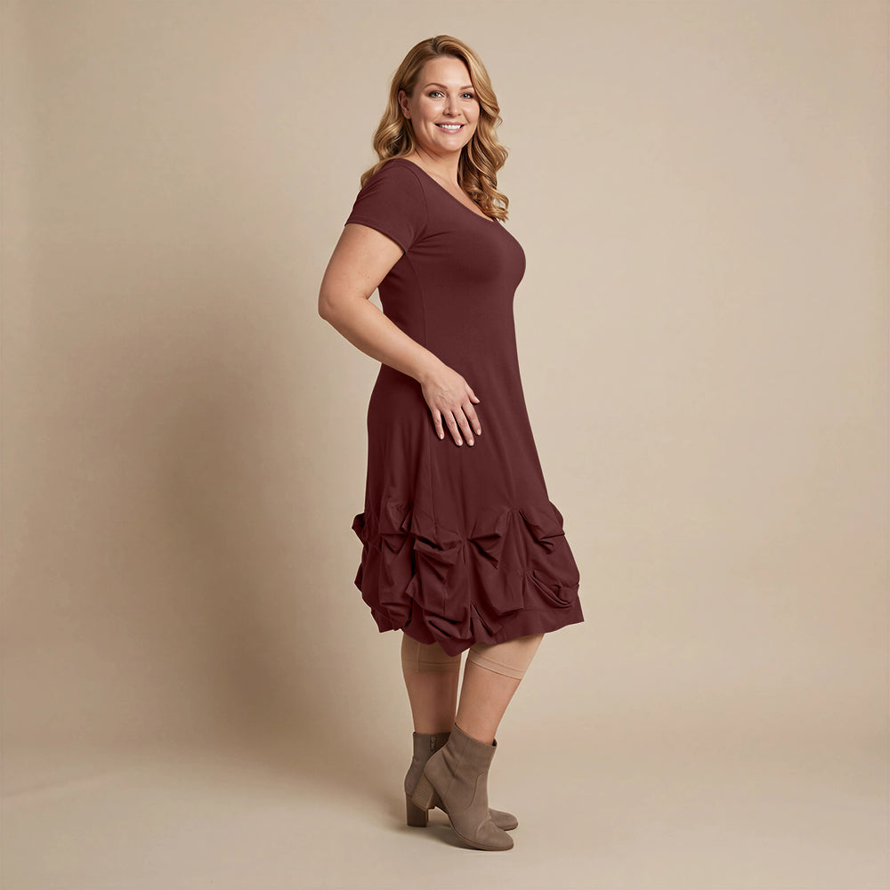 Dankjewel voor je review! Wat fijn om te horen dat je zo blij bent met de stof en de kleur. We wensen je heel veel draagplezier met je jurkje.