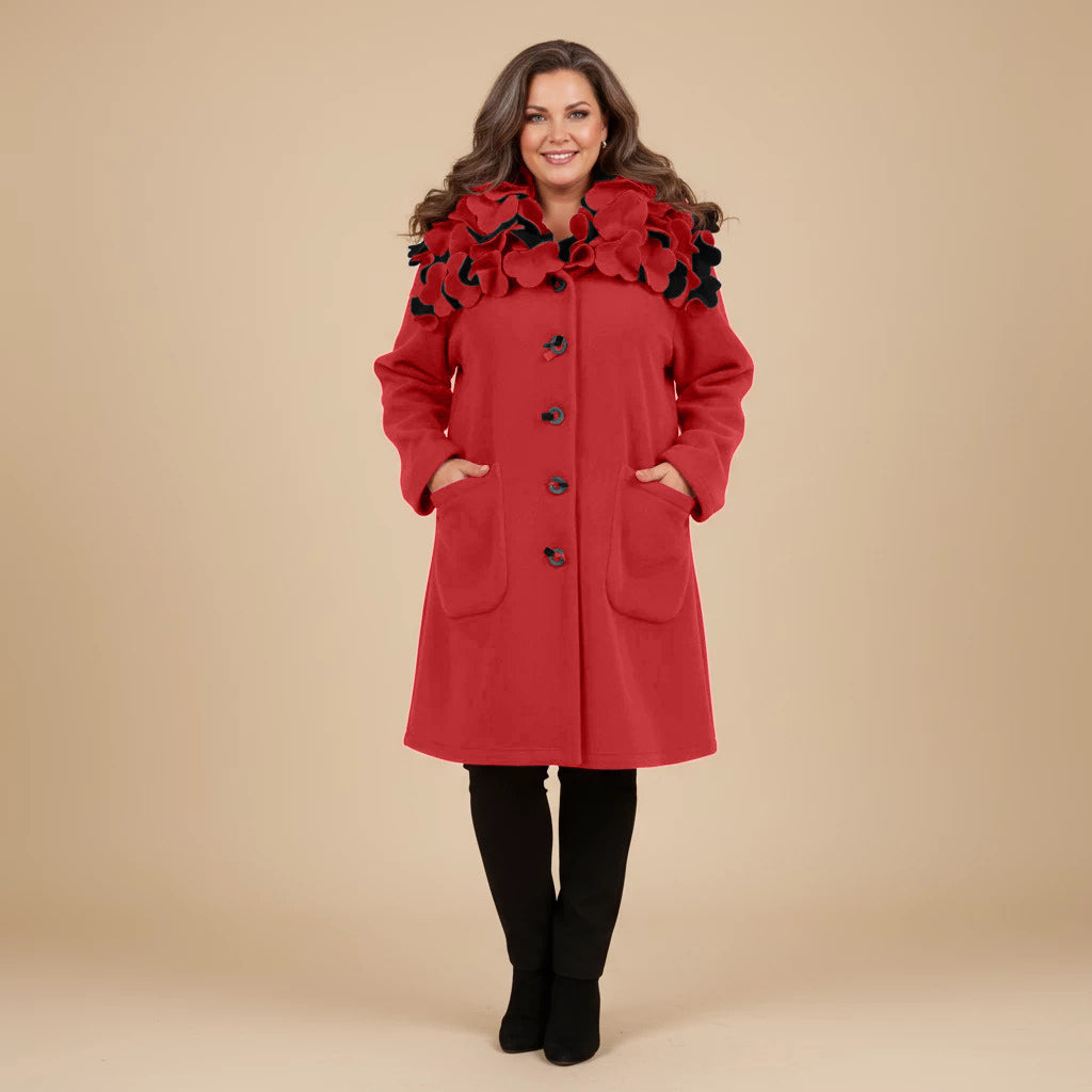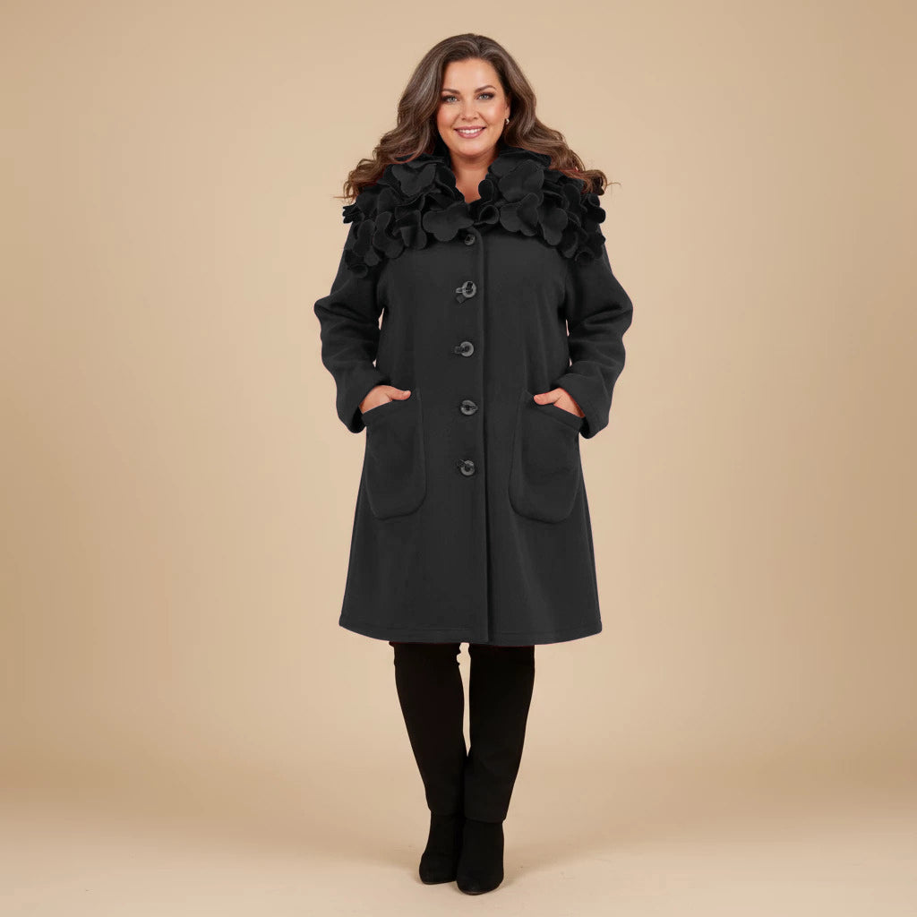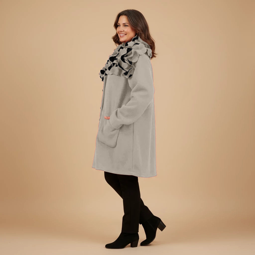 Questa giacca in fleece 3/4 di Boris Industries ha un grande colletto distintivo realizzato in toppe di fleece floreali. Le giacche colorate hanno un retro a contrasto con i fiori, mentre la variante nera è completamente uniforme. La giacca, realizzata in fleece 100% poliestere, offre un colletto morbido e caldo. Il modello svasato è adatto fino alla taglia 48 e può essere indossato sia in modo casual che elegante.