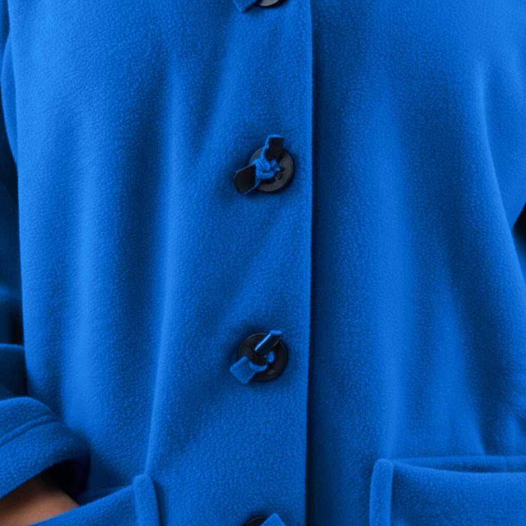 Thank you so much for this wonderful review! We’re delighted to hear that you love the vibrant cobalt blue and all the little design details like the pockets, scarf and buttons.