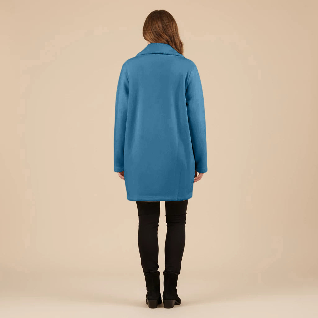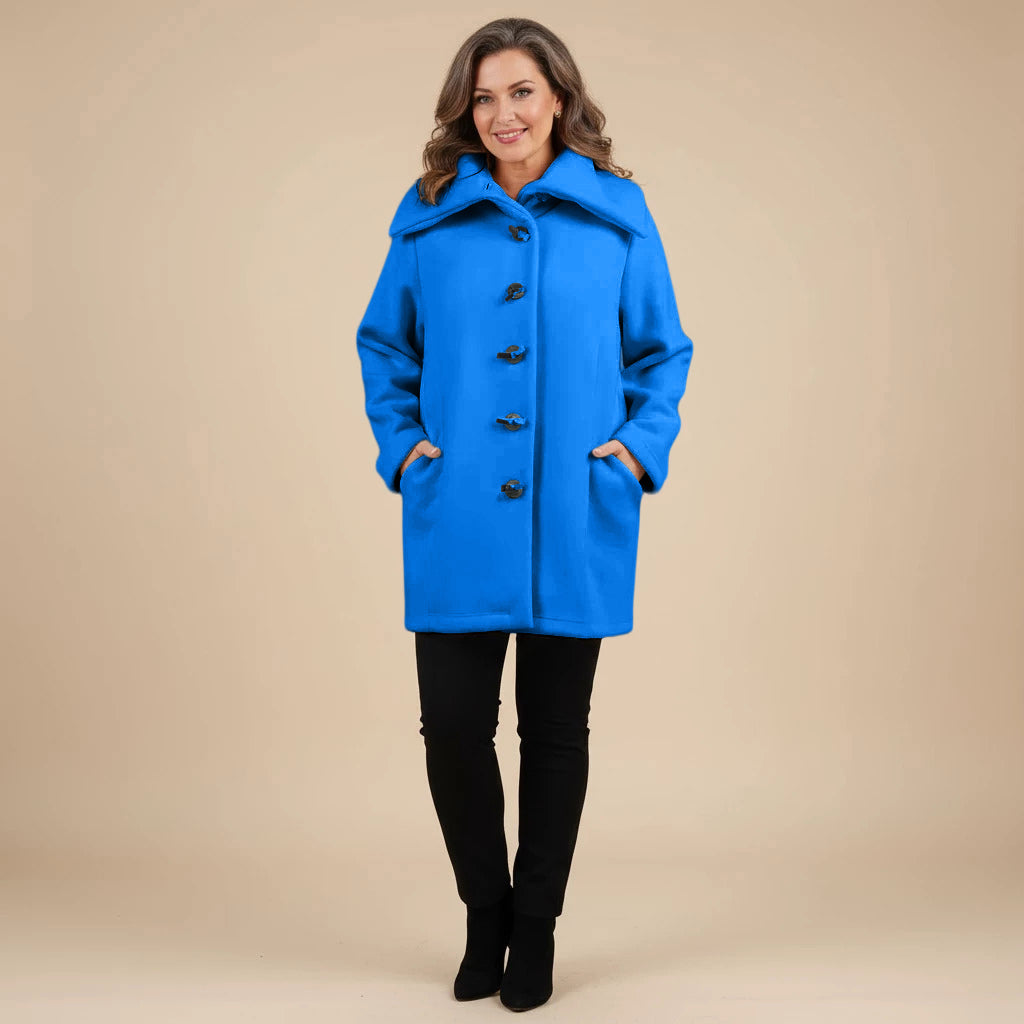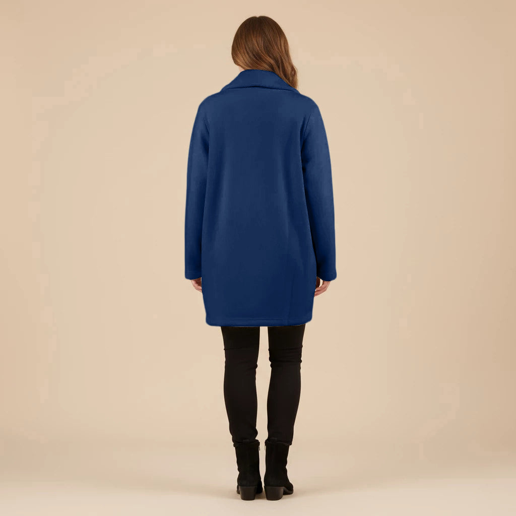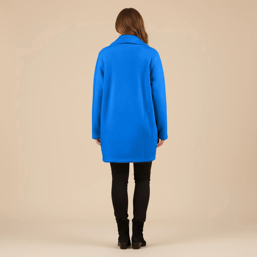 Thank you so much for this wonderful review! We’re delighted to hear that you love the vibrant cobalt blue and all the little design details like the pockets, scarf and buttons.