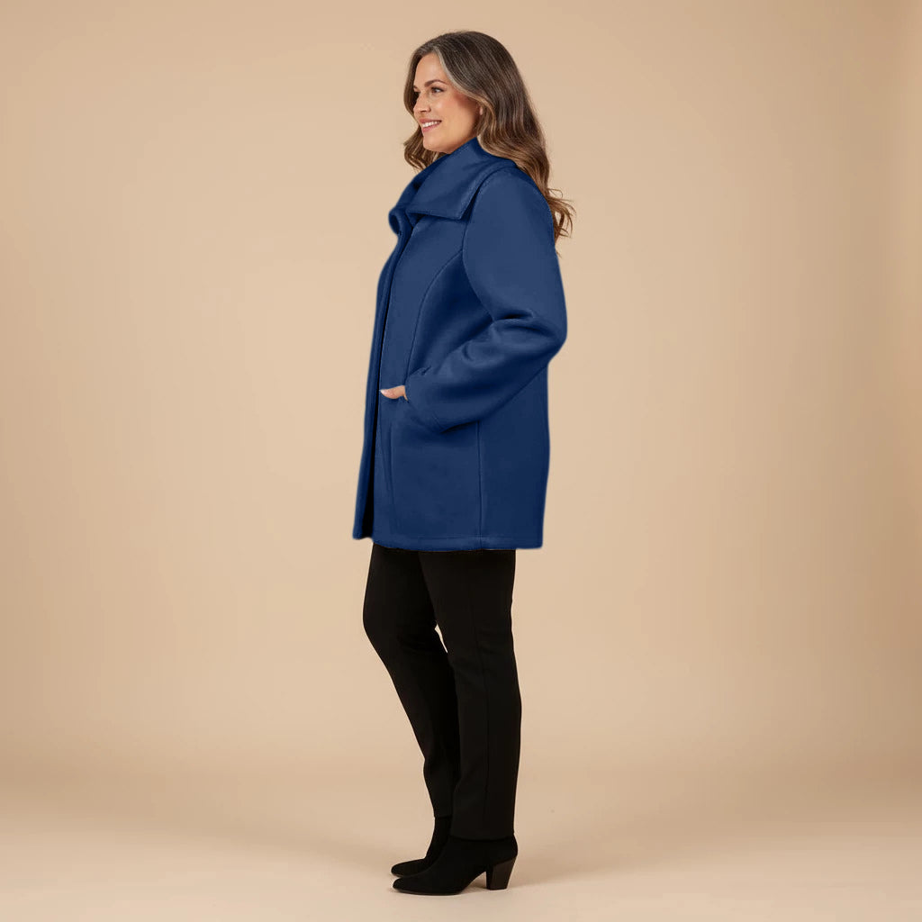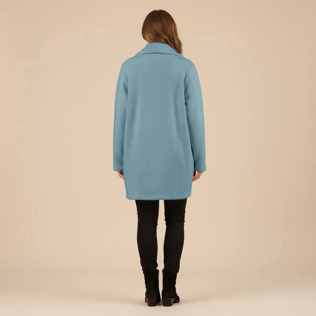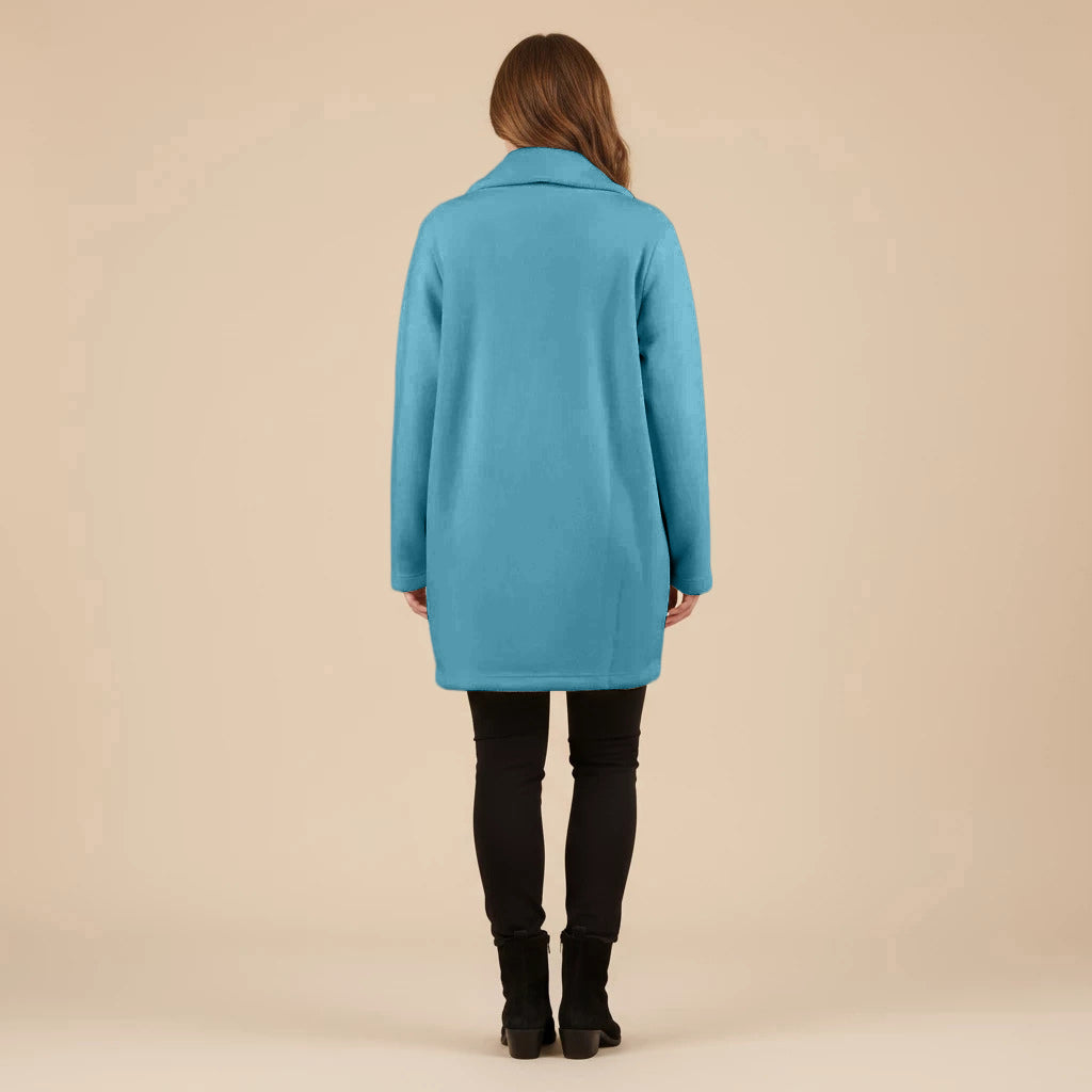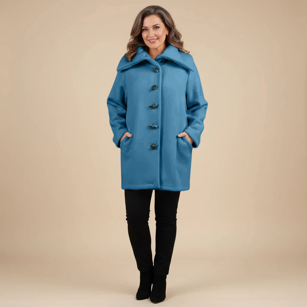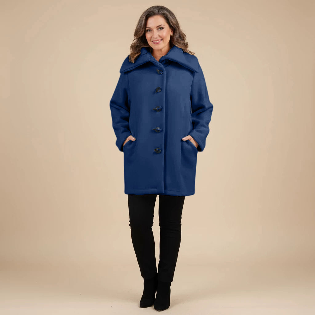 Thank you so much for this wonderful review! We’re delighted to hear that you love the vibrant cobalt blue and all the little design details like the pockets, scarf and buttons.