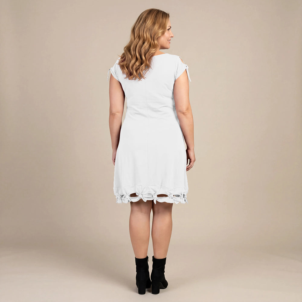 Boris Industries kjole med knapp og korte ermer er en fin modellkjole med et kort erme med en leken knapp. Sømmen på kjolen har også knapper. På grunn av knappen i ermet forblir et lite hull fra skulderen synlig, noe som er morsomt fra Boris. Boris Industries kjole med knapper finnes i forskjellige farger.