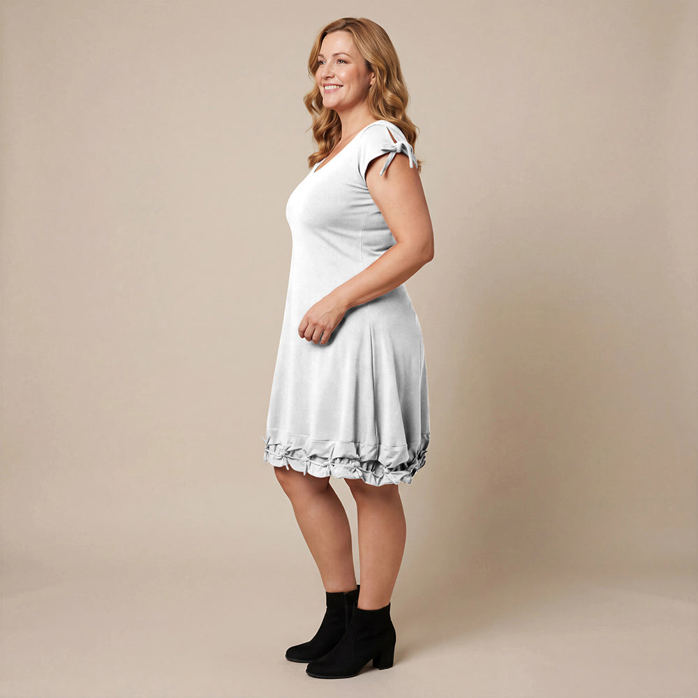 Heerlijke speelse jurk nu met een vestje enin de zomer met blote armen