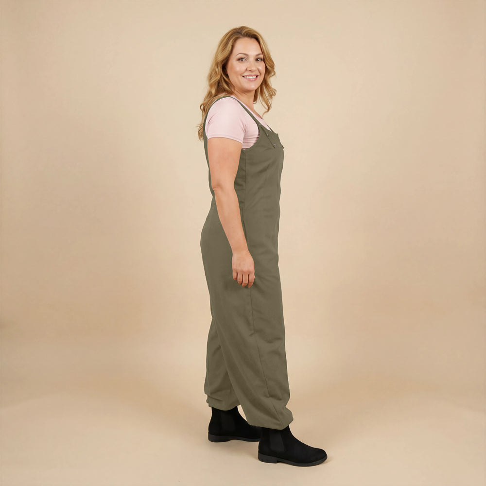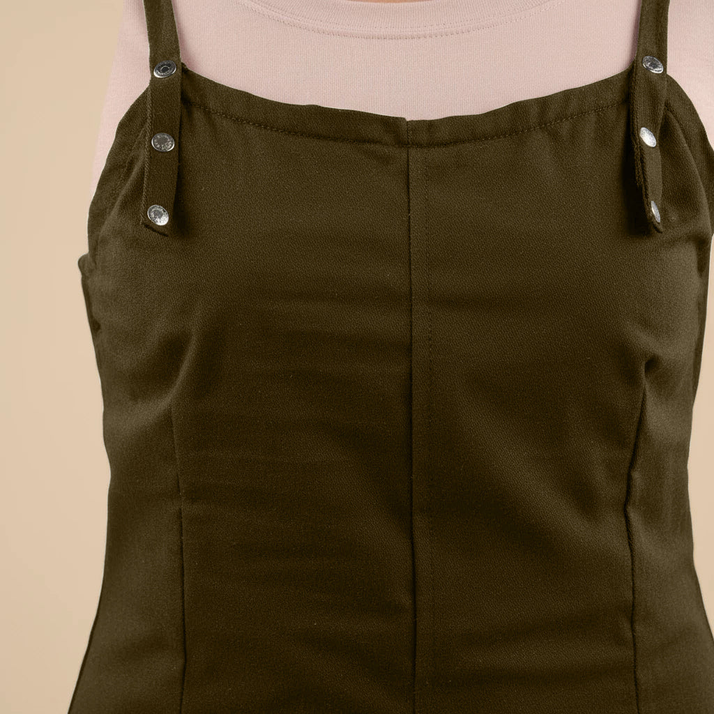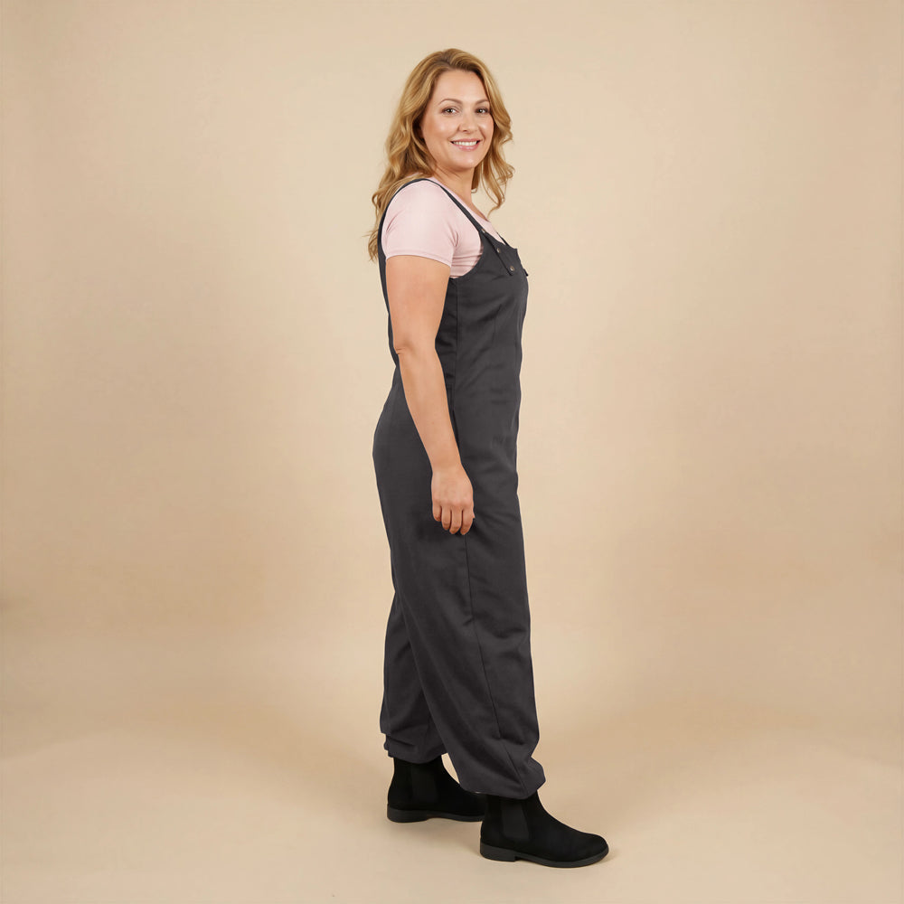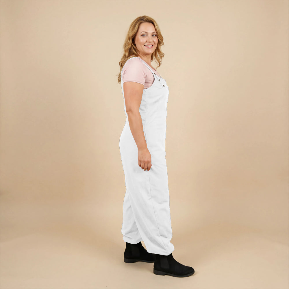 Boris Industries salopette tilbyr allsidighet og stil i hvit, svart og taupe. Laget av lett elastisk stoff, har denne salopetten justerbare skulderstropper med tre knapper for en perfekt passform. De vide buksebenene kan styles på forskjellige måter takket være snorene og knappene nederst. På sidene finnes det to praktiske lommer.