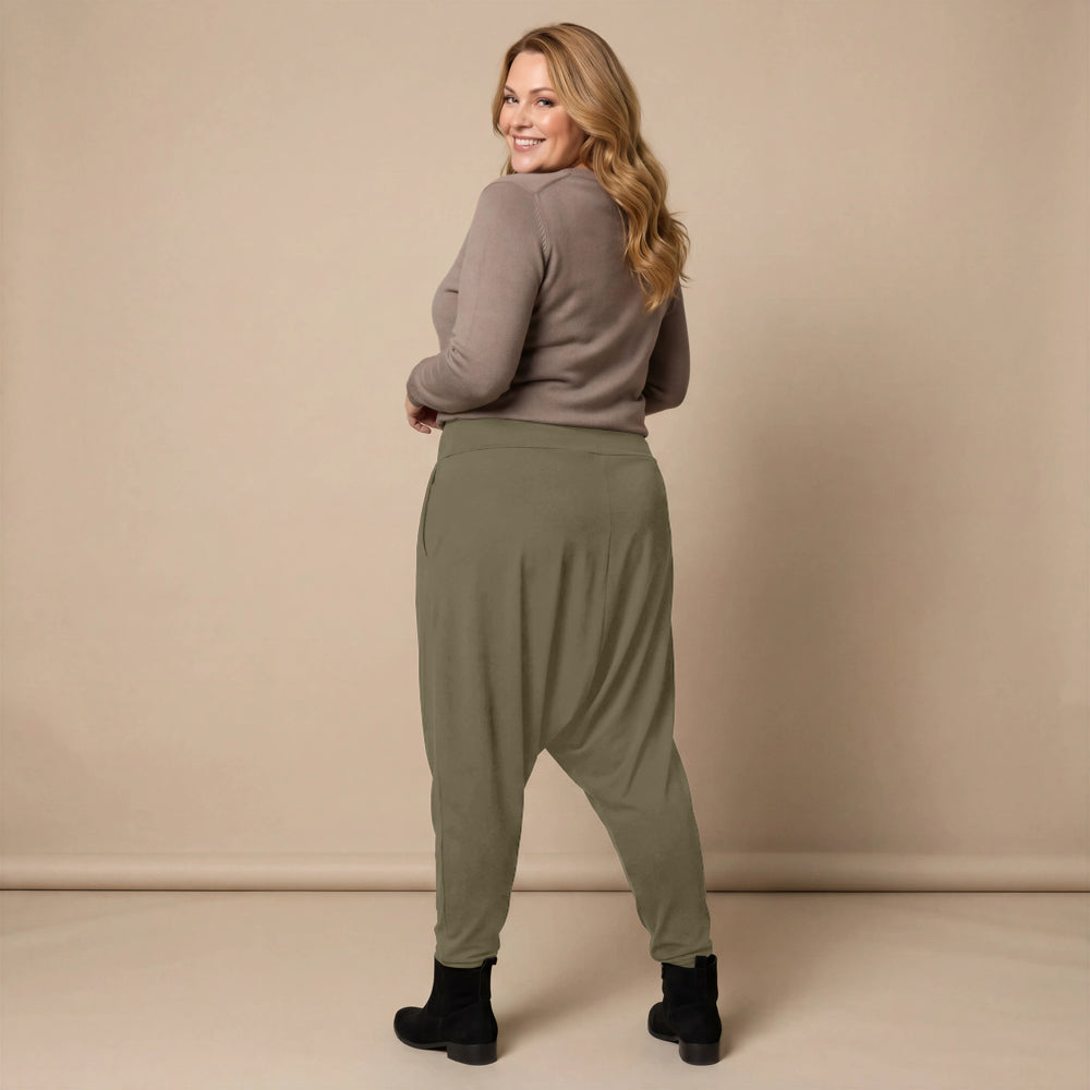 Ja. Dankzij de brede elastische tailleband kun je de broek hoger in de taille of juist wat lager op de heupen dragen, afhankelijk van je voorkeur en wat je erboven draagt.