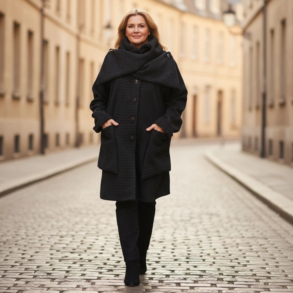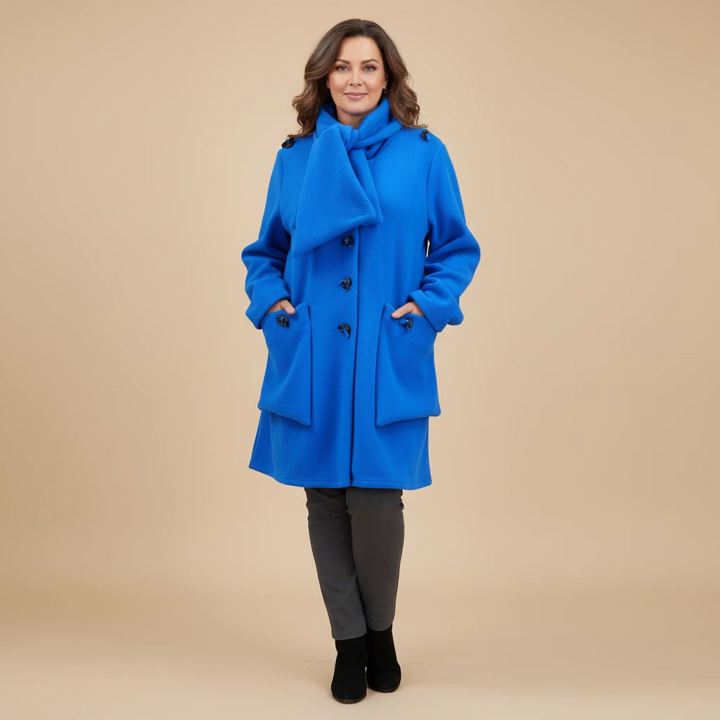 Thank you so much for this wonderful review! We’re delighted to hear that you love the vibrant cobalt blue and all the little design details like the pockets, scarf and buttons.