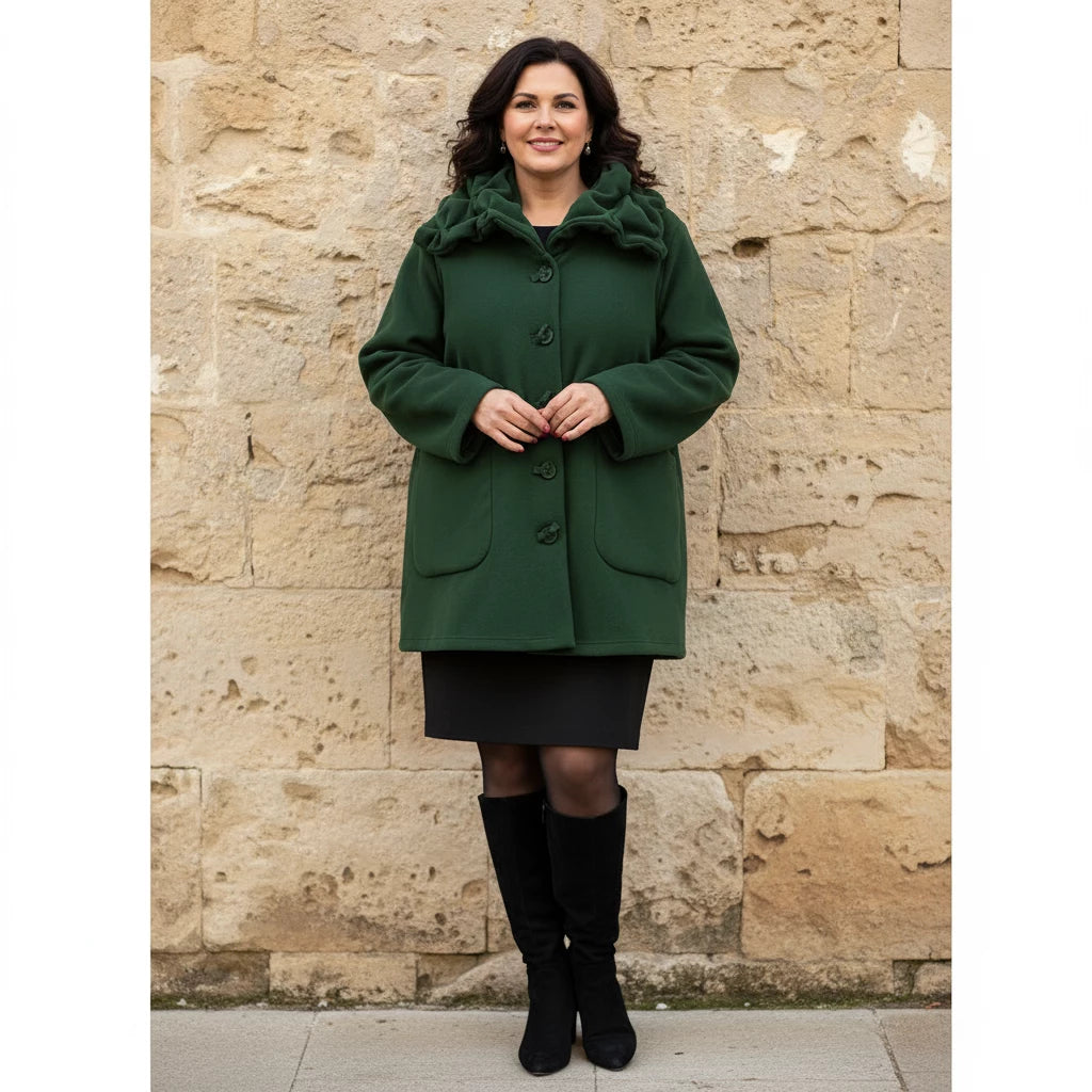 This cozy fleece coat is a statement! The cobalt blue colour is so vibrant that it will brighten any dreary winter day. There are so many interesting design elements on this coat that make it stand out. The pockets, the attached scarf and interesting buttons. I know this coat will be one to reach for in the cold days ahead!