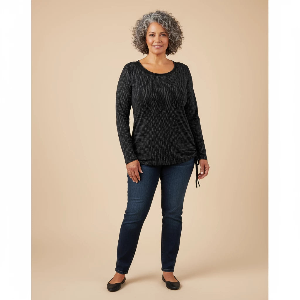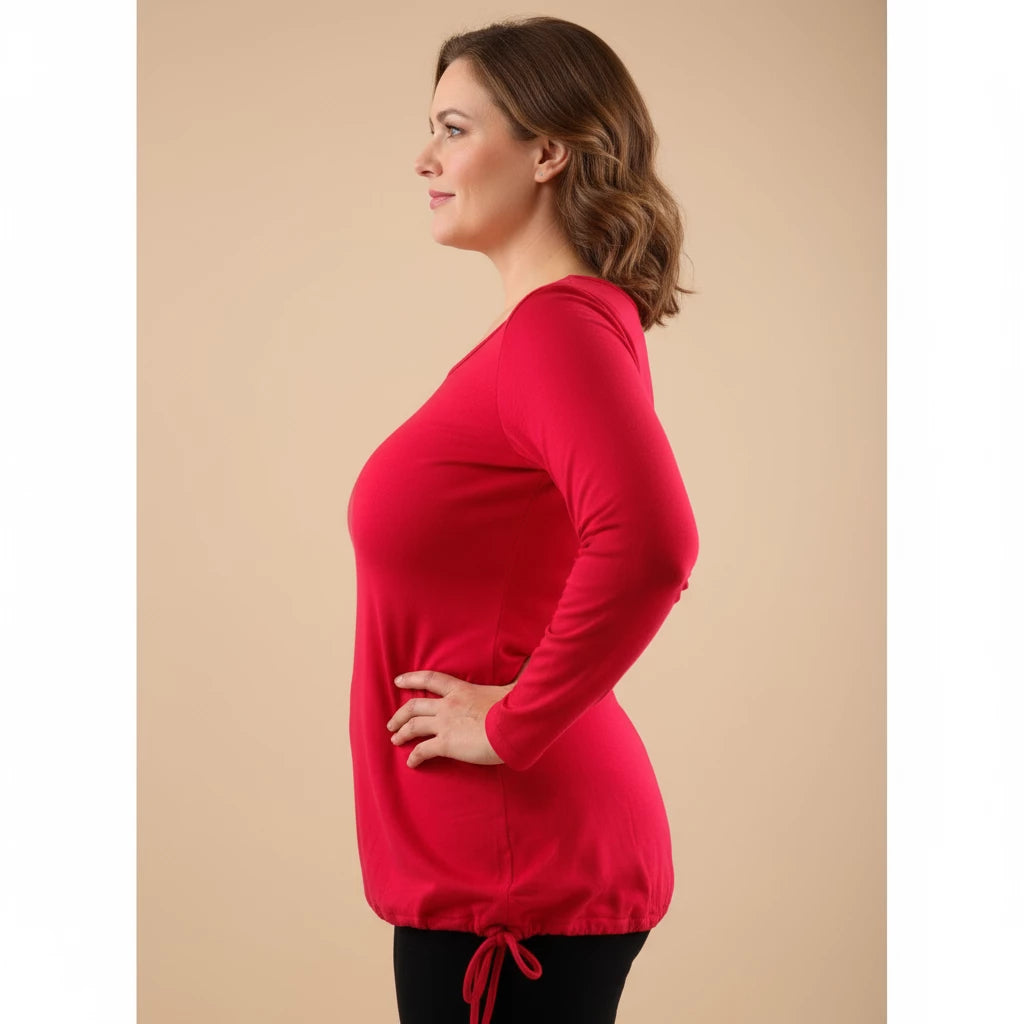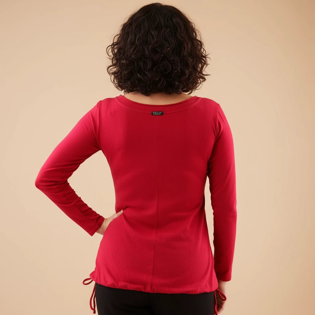 Deze top van Boris Industries draag je makkelijk op je eigen manier. De ronde hals en lange mouwen maken 'm geschikt voor elke dag. Het koordje onderaan zorgt ervoor dat je zelf de vorm bepaalt. Los of opgetrokken, net wat jij fijn vindt. Een shirt dat met je meebeweegt.