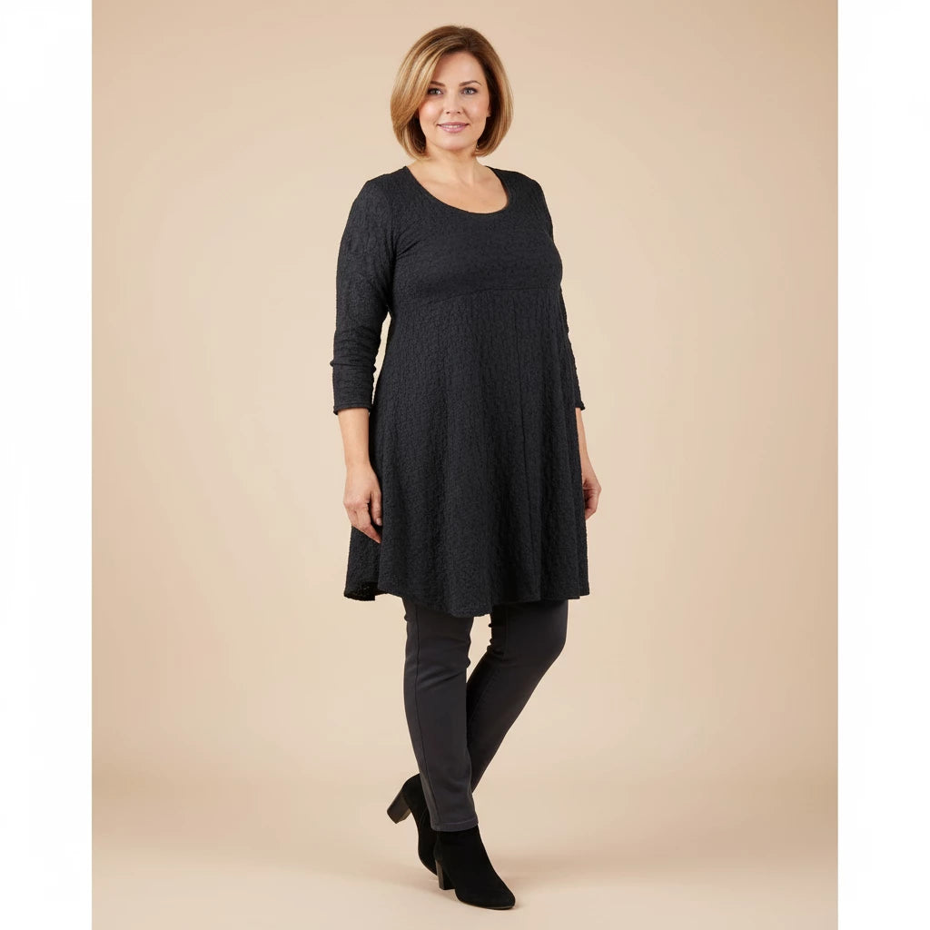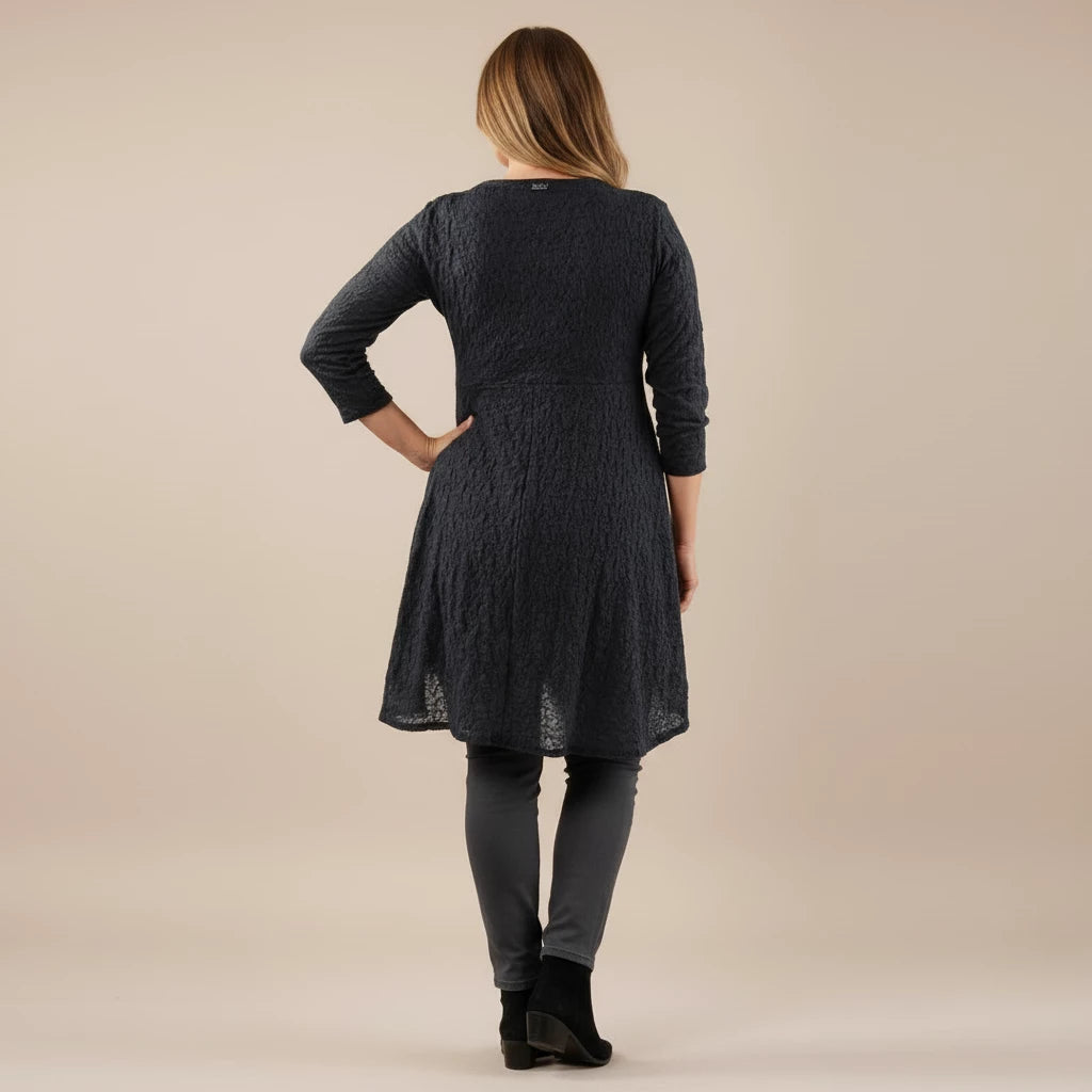 Deze lichte tuniek van Boris Industries voelt zacht aan en valt soepel als een kort jurkje. De 2/3 mouwen en de iets uitlopende vorm maken hem fijn om los te dragen. Een tuniek waar je je makkelijk en vrouwelijk in voelt.