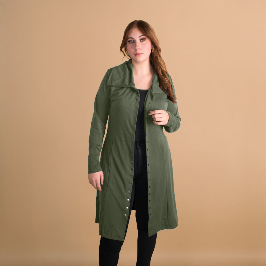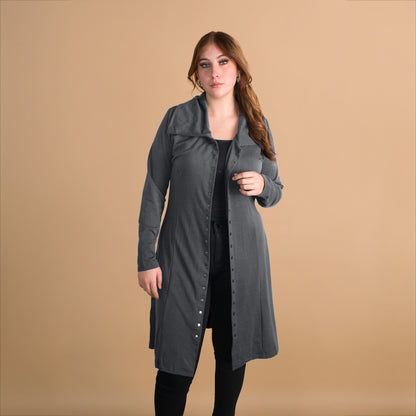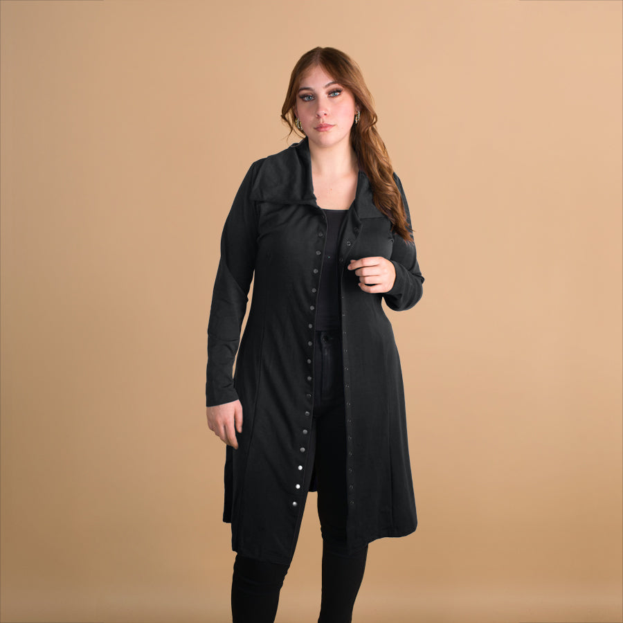 Dit lange vest van Boris Industries is een fijn item om mee te combineren. De drukknopen en de verticale naden geven het vest net wat meer vorm. Je krijgt er een los zakje bij dat handig is voor je telefoon of iets kleins. Valt ruim, dus neem bij twijfel een maatje kleiner.